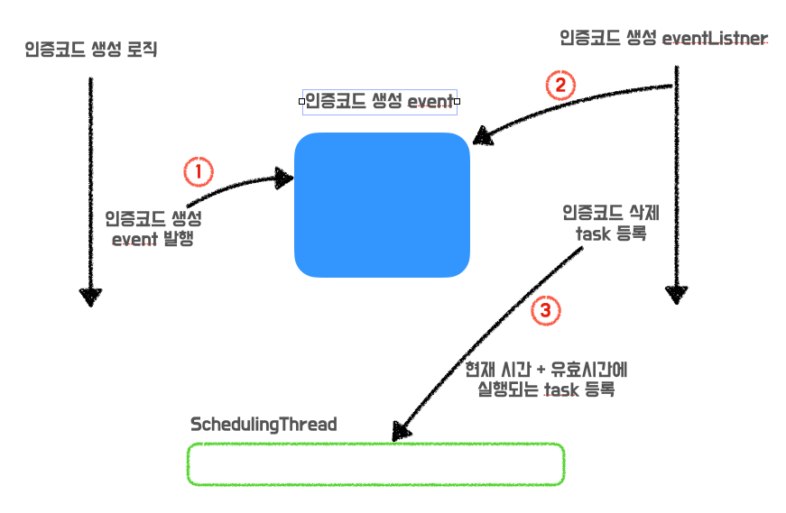 이처럼 인증코드 생성 후 이를 저장하는 트랜잭션이 종료되면 해당 이벤트를 구독하는 쪽에서 인증코드 key 를 삭제하는 스케줄링 태스크를 현재 시간 + 유효기간 에 실행되도록 추가하여 문제를 해결했습니다.